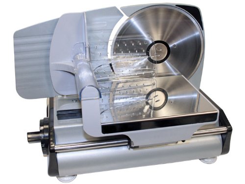 7-1/2-Inch Electric Meat Slicer 7-1/2-Inch stainless steel blade Maximum slicing thickness up to 5/8-inch Easy to clean sliding table Non-slip suction cup feet Great for the busy home cook